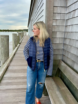 Introducing the Keeneland Vest - A classic fall staple with chic details such as suede trim, pockets and a luxurious cashmere collar.