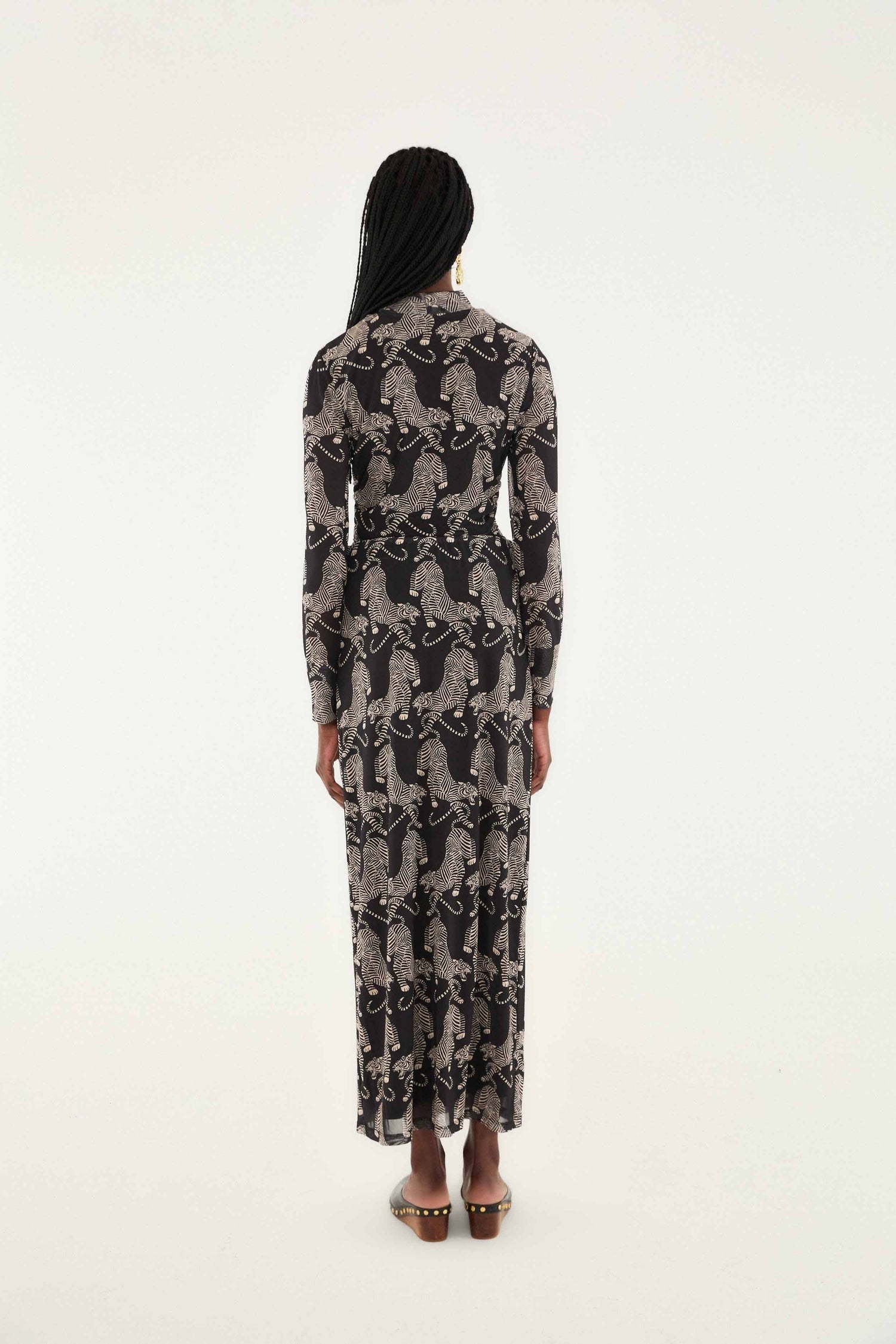 Embrace the wild elegance of the Black Striped Tigers Tulle Maxi Skirt by FARM Rio. Crafted in a sheer black tulle, it features a striking tiger print in soft beige tones that weave playful sophistication. The silhouette skims the figure with a gentle drape, creating a graceful movement that flows effortlessly. This skirt invites a dance between mystique and boldness, perfect for those who cherish spirited style and subtle charm.