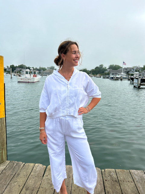 Loose and comfortable sweatshirt with hood and front zip closure. Dropped shoulders and short sleeves that end with stretch rib inserts. Made of a viscose linen blend fabric, this garment is the perfect passepartout for any occasion.