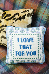 Make a statement with this charming-meets-chic needlepoint pillow. Hand embroidered in wool and backed in luxe carolina blue velvet, we've revived this Southern staple with sayings that are sure to get a smile.