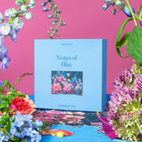 An assemblage of temperamental blossoms. This pensive puzzle showcases reaching florals juxtaposed against a jewel-toned background. A still life as poetic as they come.