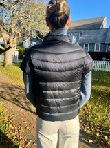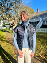 Introducing the Palm Beach Puffer: a one-of-a-kind jacket boasting luxurious down filling, chic cap sleeves, and a sophisticated grosgrain zipper detail. Experience both warmth and style in any season!