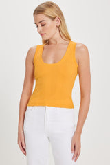 A cut above: this versatile scoop-neck tank with a soft ribbed knit and elevated hemline is here to put your high-waisted wardrobe to work.