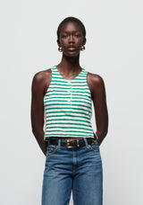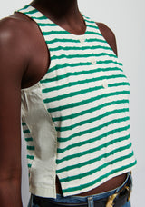 Your classic button-down tank, elevated. With contrast Poplin insets on the sides, a button placket on the scoop neck, and an easy length that hits right at the hips. Keep it buttoned, leave it loose, whatever you want.