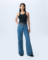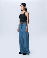 Designed to elongate the leg this playful super wide leg silhouette is crafted from premium cotton fabric and signature SLVRLAKE hardware in brushed antique nickel.