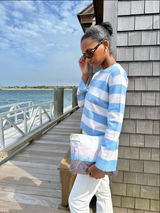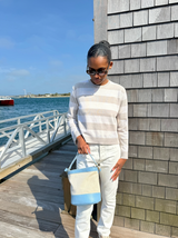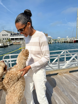 The Chappy Crew is the quintessential fun lightweight spring/summer cashmere sweater you didn't know you needed. The Chappy Crew boasts a slightly cropped high-lo cut, loose fit through body and sleeve with slits at the side and wrist. Hits at waist.