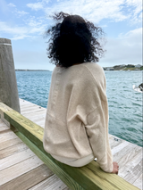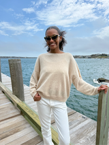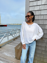 Introducing the Cooper - The perfect new addition to your spring and summer wardrobe. You'll find gorgeous details in this uber soft, lightweight and luxurious cashmere sweater that will make you want to wear it everyday! The sweater has a soft rolled boatneck, a subtle pointelle knit stripe down the back and Dolman sleeve. A roomy fit through body that's fitted at the waist creates an effortlessly stylish look that's SO easy to wear. Hits at the waist.