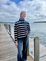 Stay cozy and stylish with our Tricot Raye turtleneck, made from luxurious cashmere. With a playful striped design, this versatile top will add a touch of fun to any outfit.