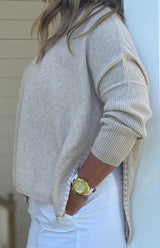 Introducing the Vero - The MVP of our new spring cashmere sweaters— The Vero is the one to wear in a pinch to look effortlessly chic and put-together. Comfortable yet versatile with fun details, to be worn on its own or layered. Split-sides with thick crochet-stitch detail, billowy fit anchored by a perfectly situated crewneck and contoured drop shoulders with ribbed full-length sleeves.