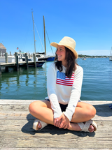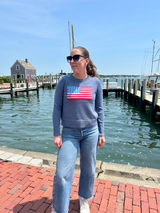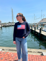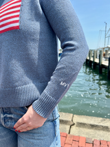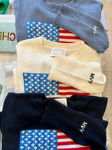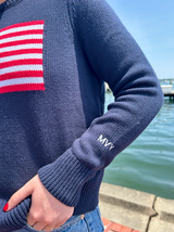 Classic Americana! Our best-selling Flag Sweater is back for spring in more patriotic hues with an updated fit and custom "MVY" embroidery on the sleeve. This cotton blend is wonderfully soft and the perfect layer weight for breezy spring days and cool summer nights.Product Features: