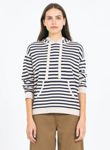 The Emerson Hoodie is a fresh take on a timeless favorite, knit from a soft, breathable blend of cotton, silk, and nylon. Featuring a relaxed fit and classic stripe pattern, it’s the perfect balance of comfort and polish. With its cozy hood and clean lines, it is made for all day comfort and is the perfect layer for at home or travel.