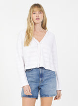 This 100% cotton cardigan is the perfect blend of softness and structure, featuring refined horizontal stitch detailing for a touch of texture and dimension. Designed with a relaxed, open-front silhouette, detailed trim, and clean finishes it’s an easy layering piece that adds quiet polish to any look.