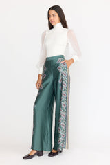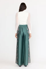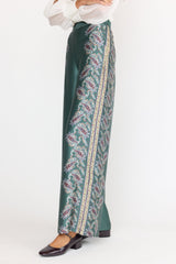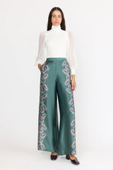 The stunning Marta Pant in Reseda Paisley drapes to the floor with sleek elegance naturally found within this garment. The intricate paisley print covers the side seam and stems down the legs, elongating any look. This wide-leg pant features a flat front with an elastic back to offer ease in dressing without compromising refinement that Christy Lynn is recognized for. It is finished with an invisible zipper and pockets at the side seam.