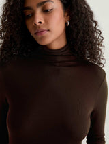 Designed to flatter and flex with your style, the Chels Turtleneck is a slim fit that creates a sleek, elongating silhouette. Lightweight yet form-fitting, it layers effortlessly under jackets or stands strong on its own. Featuring a versatile brown shade, this women’s top is designed in a 2x1 Lyocell Rib knit with a luxuriously comfortable feel that's soft against the skin.