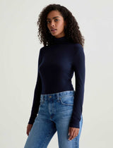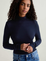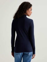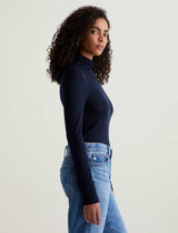The Chels Turtleneck has a slim, formfitting silhouette with a foldover neck and extended sleeves. Featuring a classic navy shade, this women’s top is designed in a 2x1 Lyocell Rib knit with a luxuriously comfortable feel that's soft against the skin.