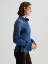 Darted for an hourglass silhouette, the Cheryl Shirt skims the body to accentuate your shape. It's fitted and waist-defining in 10.2 oz. Crosshatch Comfort Stretch Denim. Washed to a medium-blue shade, this style features a pointed collar, buttons at the front, and long sleeves with french cuffs.
