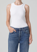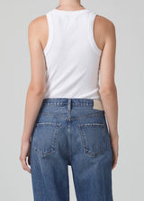 The Isabel Tank is a modern essential, cut in ultra-soft, supportive ribbed cotton with a close, flattering fit. Designed with a high neckline and clean finish, it’s ideal worn solo or layered under structured pieces. A polished base for elevated everyday styling.
