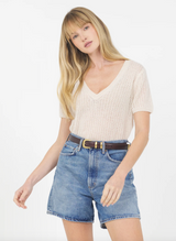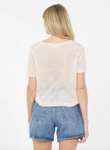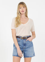 Delicately crafted from 100% pure cashmere, this pointelle V-neck tee brings elevated comfort to your everyday wardrobe. Featuring an airy, open-knit design and a flattering V-neckline, it blends lightweight luxury with timeless style.