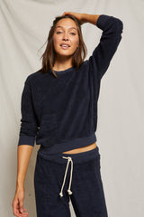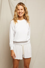 made from soft loop terry, this relaxed sweatshirt features a varsity style raglan shoulder with 3/4 sleeve length, just like our ziggy.
