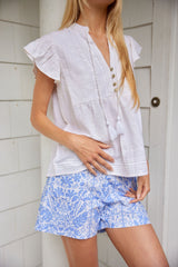 Meet the latest iteration of our Flutter Sleeve Top! Every classic closet needs a polished top to make getting ready a breeze. Designed to take the guesswork out of putting together a timeless look, you will find us pairing this with our favorite crisp white denim and gold jewelry all summer long.