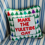 Make a statement with this charming-meets-chic needlepoint pillow. Hand embroidered in wool and backed in luxe green velvet, we've revived this Southern staple with sayings that are sure to get a smile.