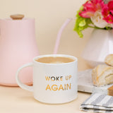 Kick start your morning with a "Woke Up Again" Chez Gagné oversized coffee mug. Because bigger is always better…
