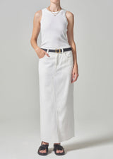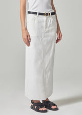 Reworked from classic 5-pocket denim construction, the Circolo skirt is designed with a full-length inseam, raw hem and back slit detail. Pair yours with a classic tee shirt and blazer for an unexpected office look.