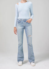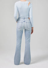 Fit:Cut to make your legs look endless, this low-rise pair offers a traditional bootcut silhouette that hugs and holds the legs before gradually flaring out past the knees.