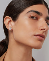 A snug pair of huggies boasting a nautilus shell. This design curves underneath the earlobe, hugging the bottom of the ear, and will sit differently depending on where your piercing is. Finished in high-polish silver.
